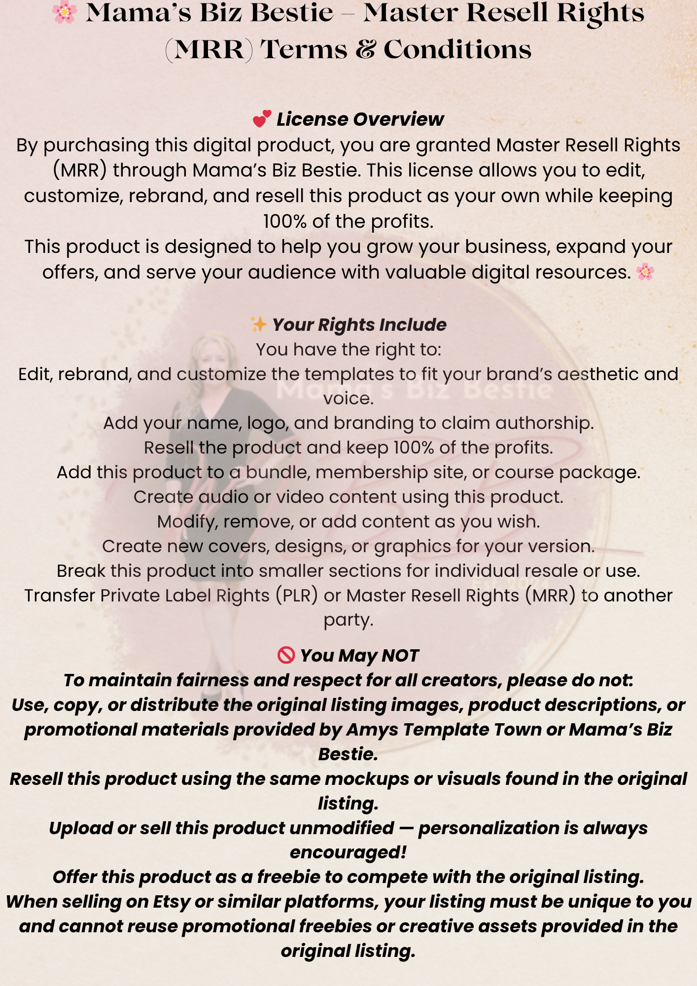 Includes Master Resell Rights (MRR) — edit, rebrand, and sell as your own!